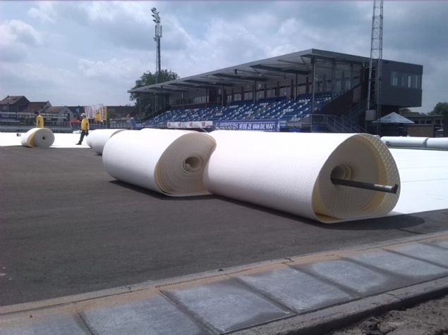 In het seizoen 2013/2014 kwamen er meldingen binnen van 1e selectie-spelers over verslechtering van het kunstgras op sportcomplex De Westmaat. Na constructief overleg tussen gemeente en clubs werd eind 2014 besloten om over te gaan tot vervanging van de bestaande kunstgras(hoofd)velden (2 stuks). De gemeente Bunschoten ging aan de slag om de vervanging van de toplagen te realiseren. Voor het advieswerk werd een beroep gedaan op buro Boot. Onderzoek, inventarisatie, afstemming met KNVB en marktonderzoek met beide clubs (eindgebruikers) resulteerde in de keuze voor een geweven kunstgrasveld met een schokdempende foamlaag. Na aanbesteding werd het werk gegund aan Greenfields B.V. Daarna begon het werk op beide hoofdvelden. In goede samenwerking tussen alle betrokken partijen werden de bestaande kunstgrasmatten verwijderd, de sporttechnische laag opnieuw geprofileerd, de schokdempende foamlaag aangebracht, de geweven kunstgrasmat aangebracht, en het zand en de "groene" SBR-rubber ingestrooid. Tot slot werd de belijning gespoten. Het resultaat mag er zijn. Het veld oogt natuurlijk. Daarnaast is door de groene rubber-infill het veld in de zomer minder warm. De huidige "zaterdag topklassers" hebben weer een topveld. Verdere bijzonderheden (bijvoorbeeld bijzondere technieken): Toepassen van een toplaag van een schokdempende foamlaag en geweven kunstgrasmat. SBR rubber is gecoat in groene kleur. Aanneemsom: 439.500,= euro, exclusief B.T.W. en projectbegeleidingskosten. Naam opdrachtgever: Gemeente Bunschoten Contactpersoon opdrachtgever: de heer P. de Bourgraaf Contactgegevens opdrachtgever: Postbus 200, 3750 GE BUNSCHOTEN-SPAKENBURG telefoon : 14 033 Naam architect: BOOT Contactpersoon architect: de heer W. Hendriks Contactgegevens architect: Postbus 509, 3900 AM VEENENDAAL telefoon: 0481 - 377 165 Naam aannemer: GreenFields B.V. Contactpersoon aannemer: mevrouw M. Lasersoms Contactgegevens aannemer: Nylonstraat 7, 8281 JX GENEMUIDEN telefoon : 038 - 33 72 010