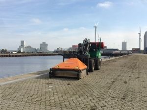 Vernieuwde Hoaf Weedair 100 Op GTH is de verbeterde versie van de Weedair 100 voor het eerst getoond door Hoaf Infrared Technology. De beschermkap is vernieuwd en geeft door de aflopende kap beter zicht op het onkruid. Nieuw is de sterke zijwaartse luchtstroom aan de rechterzijde. De zijbrander is voorzien van een elektrisch aangedreven ventilator die zorgt voor een intense temperatuur in combinatie met een krachtige luchtstroom. De krachtige luchtstroom zorgt ervoor dat de zijbrander niet vertragend werkt op de hoofdbrander. De zijbrander werkt net als de hoofdbrander in de dampfase en wordt separaat ontstoken en bewaakt met een branderautomaat. Zoekende na verbod glyfosaat Hoveniersbedrijf De Brekeld was zoekende naar de juiste onkruidbeheersingsmethode en verschillende behandelingstechnieken. Herman Manenschijn van De Brekeld is er van overtuigd dat de oplossing gezocht moet worden in de combinatie van mechanisch en thermisch. Voor het verbod van glyfosaat op verharding werd er al geëxperimenteerd met een borstel unit op een Giant minilader. In het voorjaar van 2017 kwam men tot de conclusie dat alleen borstelen niet het gewenste resultaat gaf. Na een aantal uitvoerige testen met heet water en infrarood, heeft Manenschijn gekozen voor de Hoaf Weedair 100 hetelucht unit. 'De 700°C warme lucht die vrij komt, bereikt wel de plekken tussen klinkers, daar waar de borstel niet kwam. Ook was de goede prijskwaliteit verhouding een doorslaggevende factor.' De hoge temperatuur van de Weedair 100 zorgt er voor dat veel onkruidzaden op het oppervlak worden gedood. Volgens Menno Looman van Hoaf wordt dit aspect vaak onderschat.