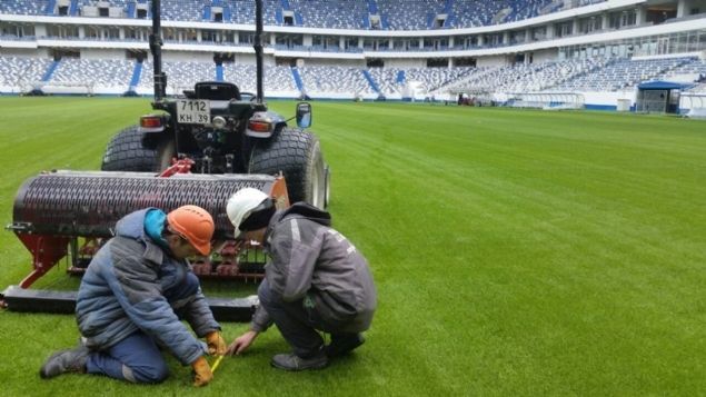 Head groundsman Vitaly Belonenko heeft in het Kaliningrad Stadion regelmatig gebruikgemaakt van de Rink 1010. De Rink 1010 biedt een strooibreedte tot 1,5m en een dikte van maximaal 10 mm. Regelmatige topdressings vinden plaats in het stadion om het veldoppervlak te verstevigen, inclusief tien ton in de week vóór de opening van het stadion in april. De machine wordt gebruikt in combinatie met een Redexim Verti-Drain 7215 beluchter om het zand dieper in de bodem te verwerken.
