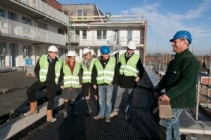 | | Nieuwe fase in het masterplan Raadhuisplein: het aanbrengen van dakbegroeiing, onder toeziend oog van de wethouders Nieske Ketelaar en Marjan van der Aart van Smallingerland, Rob Steltenpöhl technisch adviseur Optigroen, Gert Paul Bonhof projectleider bouwbedrijf Koopmans TBI, Bart Mispelblom Beyer architect directeur TANGRAM architecten en Klaas Wiersma projectleider dak- en gevelbegroeiing Frisia Bergum. |
