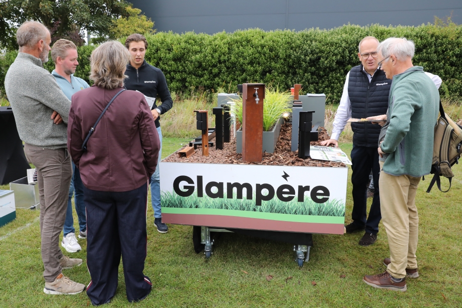 | Glampère liet haar nieuwste service station zien op Nationale Hoveniersdag: een stijlvolle tuinpaal met zowel een watertap als een dubbel stopcontact. |